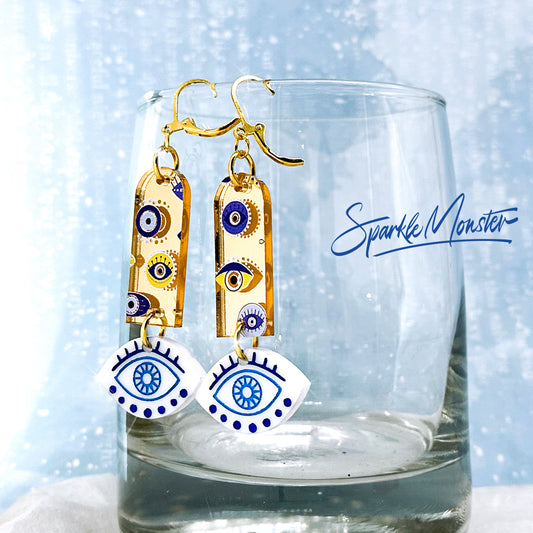 SALE Every Occasion dangle earrings, Evil Eye pattern