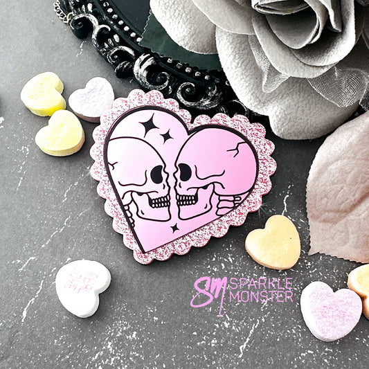 Til Death Do Us Part, heart dangle earrings, pink glitter