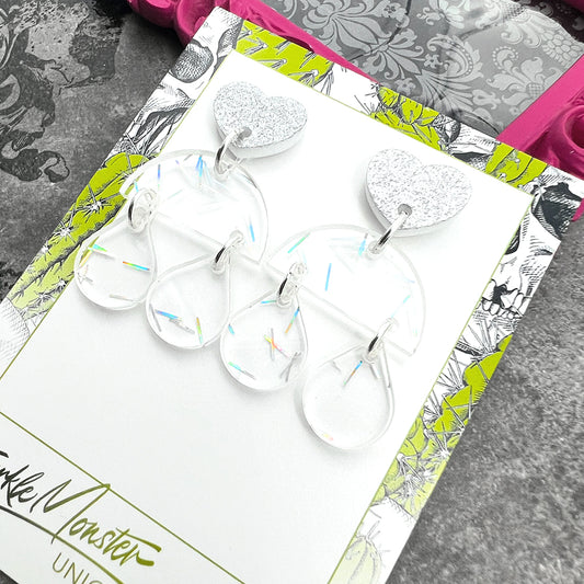 Sweet Petite dangle earrings, clear confetti