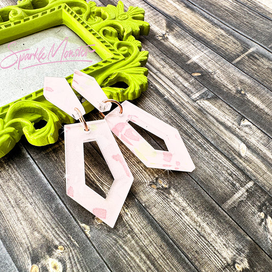 SALE Everyday Art Deco, dangle earrings, light pink terrazzo