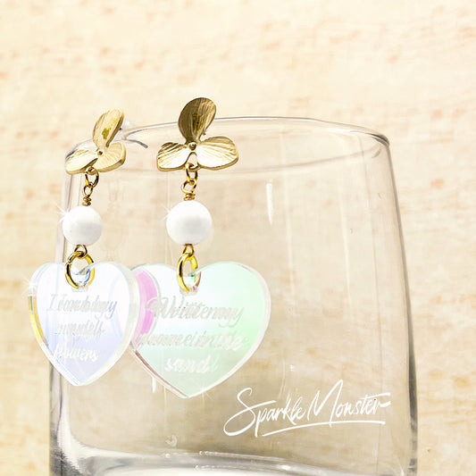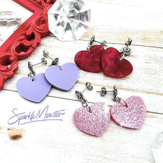 Heart and Roses acrylic earrings, post tops, 3 colors
