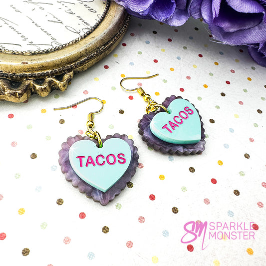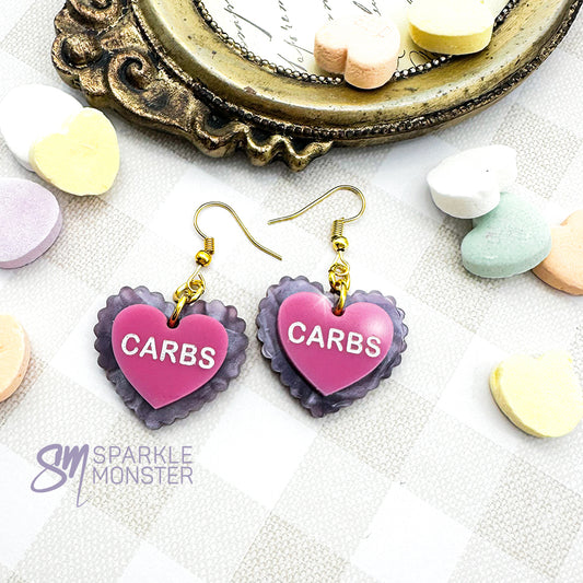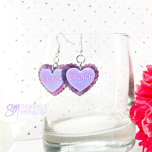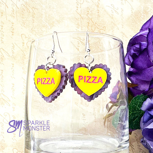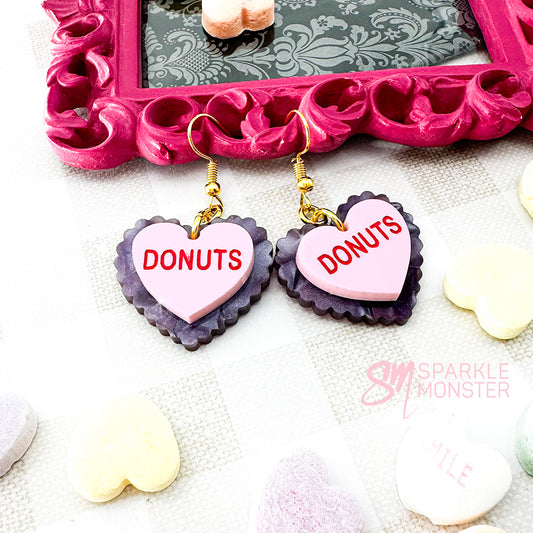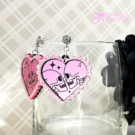 Til Death Do Us Part, heart dangle earrings, pink glitter