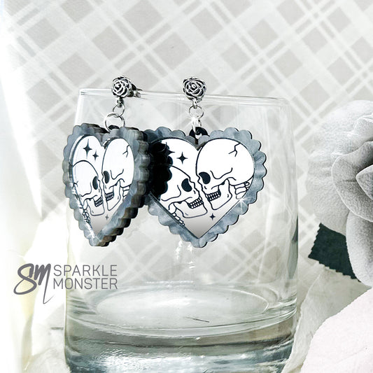 Til Death Do Us Part, heart dangle earrings, pearl gray