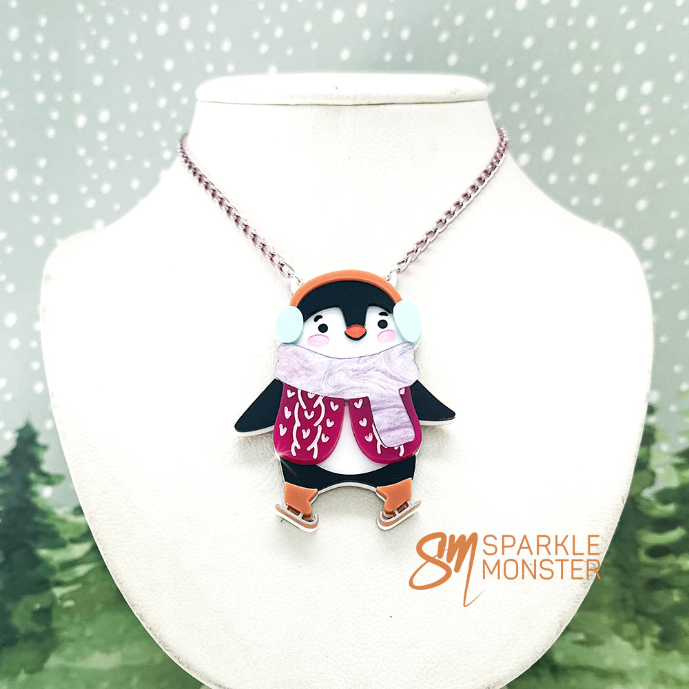 Penguin with skates statement necklace